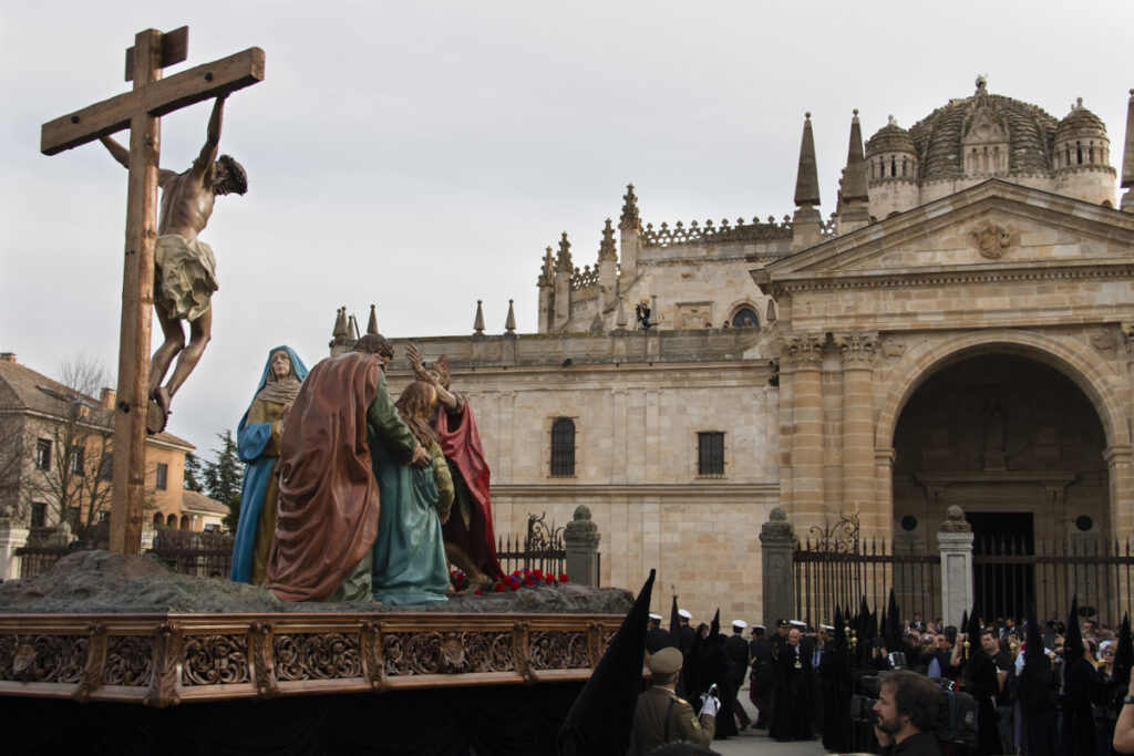 Platillos típicos: Torrijas (pan empapado en leche y miel, luego frito), potaje de vigilia (guiso de garbanzos con bacalao y espinacas), y monas de Pascua (pan dulce decorado con huevos).