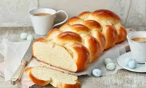 Platillos típicos: Osterlamm (pastel en forma de cordero), huevos cocidos pintados, y Hefezopf (pan dulce trenzado).