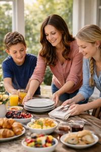 El brunch, que combina desayuno y comida, es un espacio de convivencia. Se da principalmente en fines de semana o reuniones informales, y su valor no está solo en lo que se sirve, sino en lo que genera: conversaciones, cercanía y momentos memorables. Es una forma sencilla y actual de vivir la hospitalidad en casa.