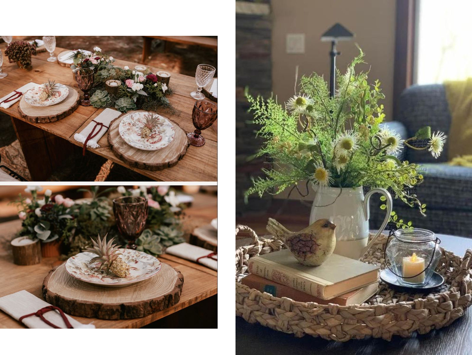 El enfoque hacia la sostenibilidad sigue en auge en la decoración de interiores, y esta temporada no es la excepción. Se prefieren materiales naturales como la madera, el mimbre, el lino, el algodón orgánico y la cerámica hecha a mano. Las mesas de comedor se adornan con manteles y caminos de mesa de lino en tonos neutros, mientras que los accesorios de cerámica y vajillas con acabados irregulares aportan un toque artesanal. Esta tendencia también incluye el uso de detalles en piedra, mármol o corcho para pequeños acentos decorativos, como portavelas o platos de presentación.